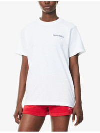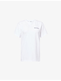 PRODUCT DETAILS - Sporty & Rich cotton-jersey T-shirt - 100% cotton - Relaxed fit, ribbed round-neck, short sleeves, brand print at front, text print at back - Machine wash at 30°C - Made in USA - True to size - Model is 5ft 10in/1.78m and wears a size small - Lightweight, stretchy Ref: R04460610