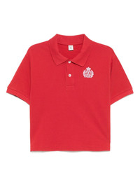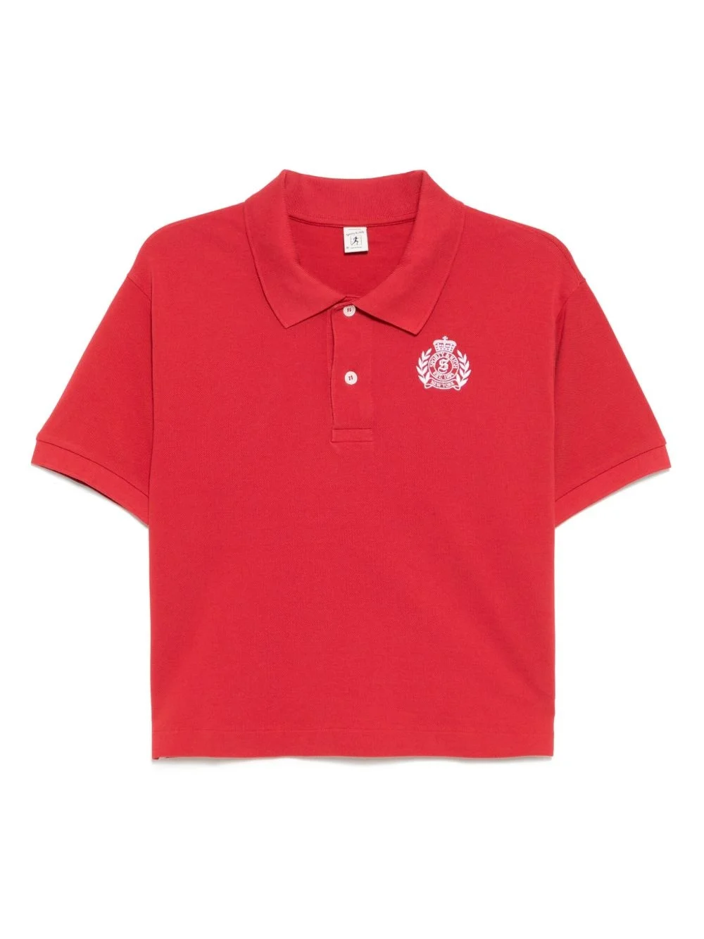 H&W crest pique polo top Highlights - Brick red - Short front button fastening - Polo collar - Ribbed cuffs Imported Composition Cotton 100% SIZE & FIT Model measurements Height 5 ft 9 in(1.76 m) Bust/Chest 31.1 in(79 cm) Hips 35.03 in(89 cm) Waist 24.4 in(62 cm) FittingInformation Designed for a boxy fit, intended for a loose fit throughout Made from a midweight non-stretch fabric, this piece offers minimal elasticity when worn Measurement BUST 41.73 in(106 cm) Shoulder Width 18.11 in(46 cm)