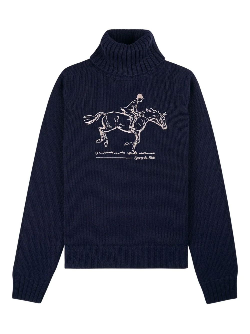 illustration turtleneck sweater Highlights - Navy blue - Knitted construction - Roll-neck - Long-sleeves - Illustration-embroidered - Ribbed trim Imported Composition Cotton 100% Washing instructions Read Manufacturer Guidelines