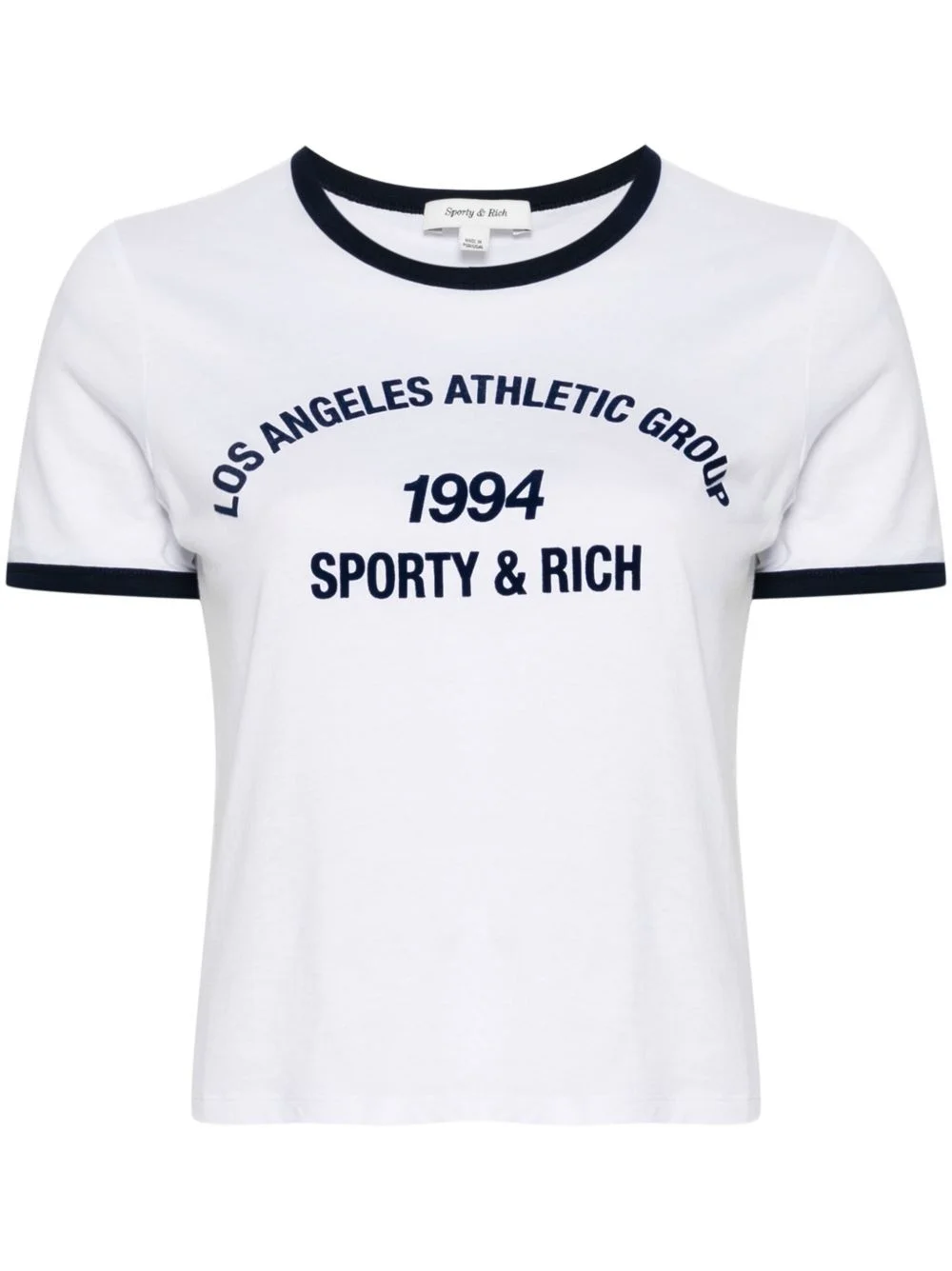 text-print T-shirt Highlights - White - Navy blue - Cotton - Lightweight jersey - Text print - Contrasting trim - Crew neck - Short sleeves - Logo print to the front - Straight hem Imported Composition Cotton 100% SIZE & FIT Model measurements Height 5 ft 9 in(1.75 m) Bust/Chest 31.88 in(81 cm) Hips 34.64 in(88 cm) Waist 24.01 in(61 cm) FittingInformation Designed for a slim fit that sits just away from the body offering a close yet comfortable fit Made from a lightweight non-stretch fabric, this piece offers minimal elasticity when worn Washing instructions Machine Wash