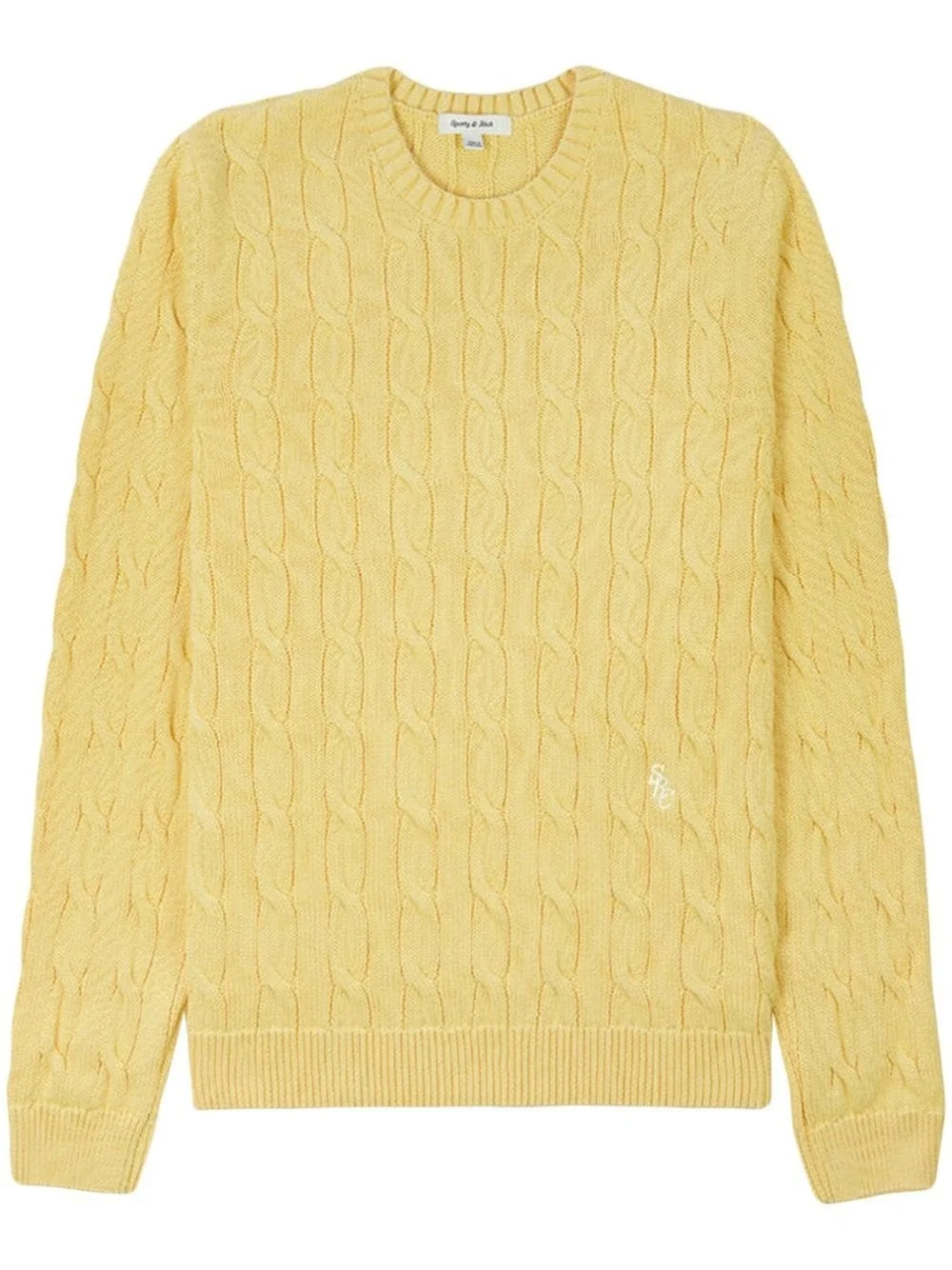 logo-embroidered cable-knit jumper Highlights - Citrin pale yellow - Cotton - Knitted construction - Cable knit - Embroidered logo to the front - Ribbed crew neck - Long sleeves - Ribbed cuffs and hem - When buying this unisex item, keep in mind that it is graded in standard men's sizing. Imported Composition Cotton 100%