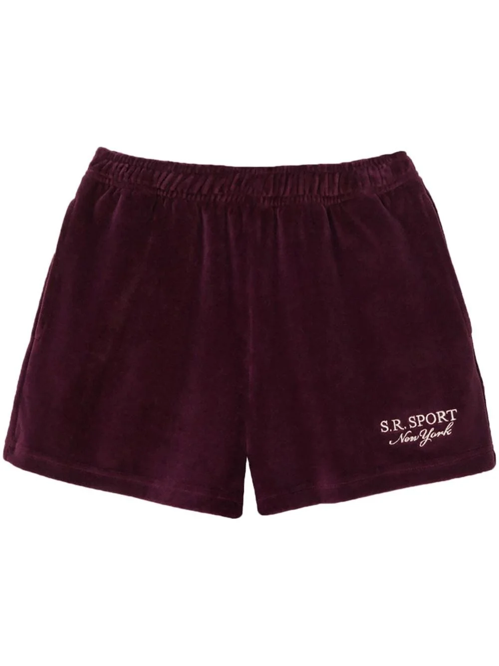 logo-embroidered velvet shorts Highlights - Wine red - Cotton - Velvet effect - Embroidered logo to the front - Elasticated waistband - Two side slit pockets - Rear patch pocket - Straight leg - Thigh-length Imported Composition Cotton 100%