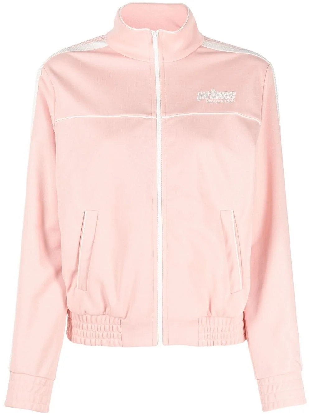 logo-embroidered zip-up jacket With a lightweight construction in pink and white hues, this zip-up jacket by Sporty & Rich is adorned with discreet side stripes. At the chest, the brand's logo embroidery gives the garment a branding touch. Highlights - Light pink/white - High neck - Front zip fastening - Embroidered logo at the chest - Long sleeves - Side stripe detailing - Elasticated cuffs - Two side welt pockets - Elasticated hem Imported Composition Polyester 52%, Cotton 48% SIZE & FIT Model measurements Height 5 ft 10 in(1.79 m) Bust/Chest 31.1 in(79 cm) Hips 35.03 in(89 cm) Waist 24.01 in(61 cm) FittingInformation Designed for a relaxed fit, this piece allows for comfort and movement when worn The elasticated waist allows for a comfortable fit Made from a midweight non-stretch fabric, this piece offers minimal elasticity when worn This piece fits true to size – take your usual size
