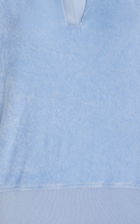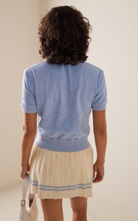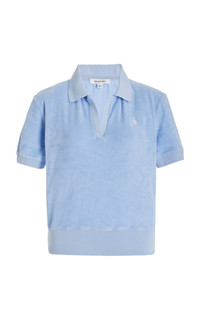 Emily Oberg, the influential designer behind Sporty & Rich, says the lifestyle brand's ethos is "be nice, drink water, be good to the planet, take care of yourself and live a life of pleasure." Made of a plush and absorbent cotton terry, this shirt has a polo silhouette with all the details including short sleeves, a collared neck, and fitted waistband. Style yours with a pleated tennis skirt for a right-off-the-court look. PRODUCT DETAILS - Featured in the Pre Fall '23 collection - Slip on - Composition: 100% cotton - Designer color: Wash Hydrangea/White - Machine wash - Imported SIZE & FIT - Our model is wearing a size Small - Our model is 5'9" with a 32" bust, 24" waist, and 34.5" hip