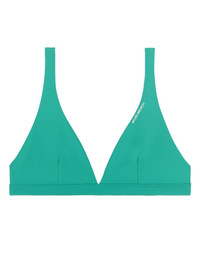 logo-print bikini top Highlights - Jade green - Stretch-design - Logo print to the front - V-neck - Adjustable shoulder straps - Rear clasp fastening - Be mindful to try on swimwear over your own garments. Imported Composition Polyamide 74%, Elastane 26%