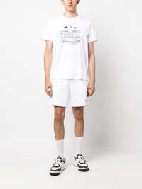 logo-print cotton track shorts Highlights - White - Cotton - Logo print to the side - Elasticated waistband - Rear patch pocket - Thigh-length - Two side slit pockets - When buying this unisex item, keep in mind that it is graded in standard men's sizing. Made in United States Composition Cotton 100% SIZE & FIT Model measurements Height 5 ft 9 in(1.75 m) Bust/Chest 32.67 in(83 cm) Hips 35.03 in(89 cm) Waist 24.21 in(61.5 cm) FittingInformation This piece is unisex and is designed with a straight-cut over the leg whether you usually select women's or men's sizes The elasticated waist allows for a comfortable fit Made from a midweight non-stretch fabric, this piece offers minimal elasticity when worn