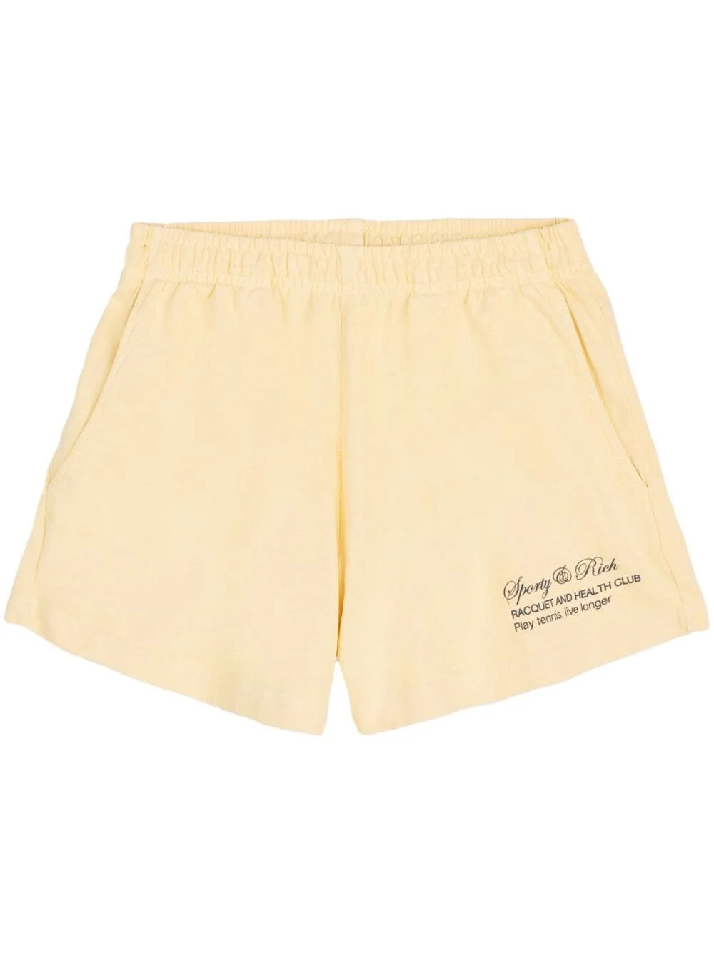 logo-print cotton track shorts Highlights - Butter yellow - Cotton - Logo print at the hem - Elasticated waistband - Two side inset pockets - Rear patch pocket Imported Composition Cotton 100%