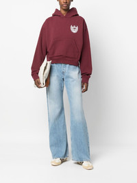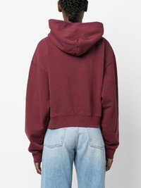 logo-print cropped hoodie burgundy cotton logo print at the chest classic hood drop shoulder long sleeves front pouch pocket straight hem cropped Made in United States Composition Cotton 100% SIZE & FIT Model measurements Height 5 ft 10 in(1.77 m) Bust/Chest 29.92 in(76 cm) Hips 34.25 in(87 cm) Waist 23.62 in(60 cm) FittingInformation This piece fits true to size. We recommend you get your regular size Cut for a loose fit Made with a mid-weight fabric Washing instructions Machine Wash