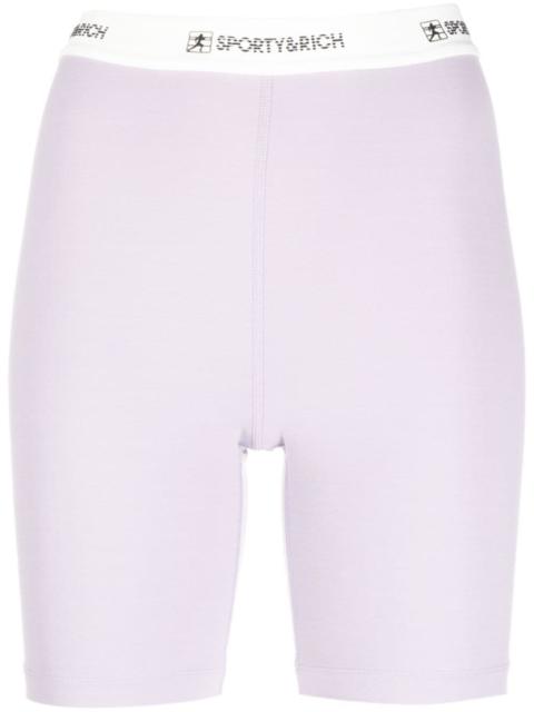 logo-waistband shorts Highlights - Aqua blue/white - Stretch-design - High waist - Logo waistband - Thigh-length - Elasticated waistband Imported Composition Nylon 82%, Spandex/Elastane 18% SIZE & FIT Model measurements Height 5 ft 9 in(1.76 m) Bust/Chest 33.07 in(84 cm) Hips 34.64 in(88 cm) Waist 25.59 in(65 cm) FittingInformation Designed for a close fit throughout The elasticated waist allows for a comfortable fit Made from a midweight stretch fabric, this piece offers elasticity and flexibility when worn This piece fits true to size – take your usual size
