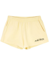 Marathon Disco track shorts Highlights - Lemon yellow - Cotton - Jersey knit - Logo print to the front - Elasticated waistband - Slip-on style - Two side slit pockets - Rear patch pocket Made in United States Composition Cotton 100%