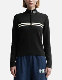- Sporty & Rich - Minimal Quarter Zip - Long sleeves - Viscose and cotton blend construction - Quarter-zip closure - Embroidered logo felt patch on collar - Contrasting stripe across chest - Straight hem - Color: Black/Off White - Material: 60% Viscose, 40% Cotton - See more Sweatshirts and Clothing SIZING - Model wears size S - Model measures: Height 179cm, Chest 32”/81cm, Waist 23’’/58.42cm, Hip 35’’/88.9cm