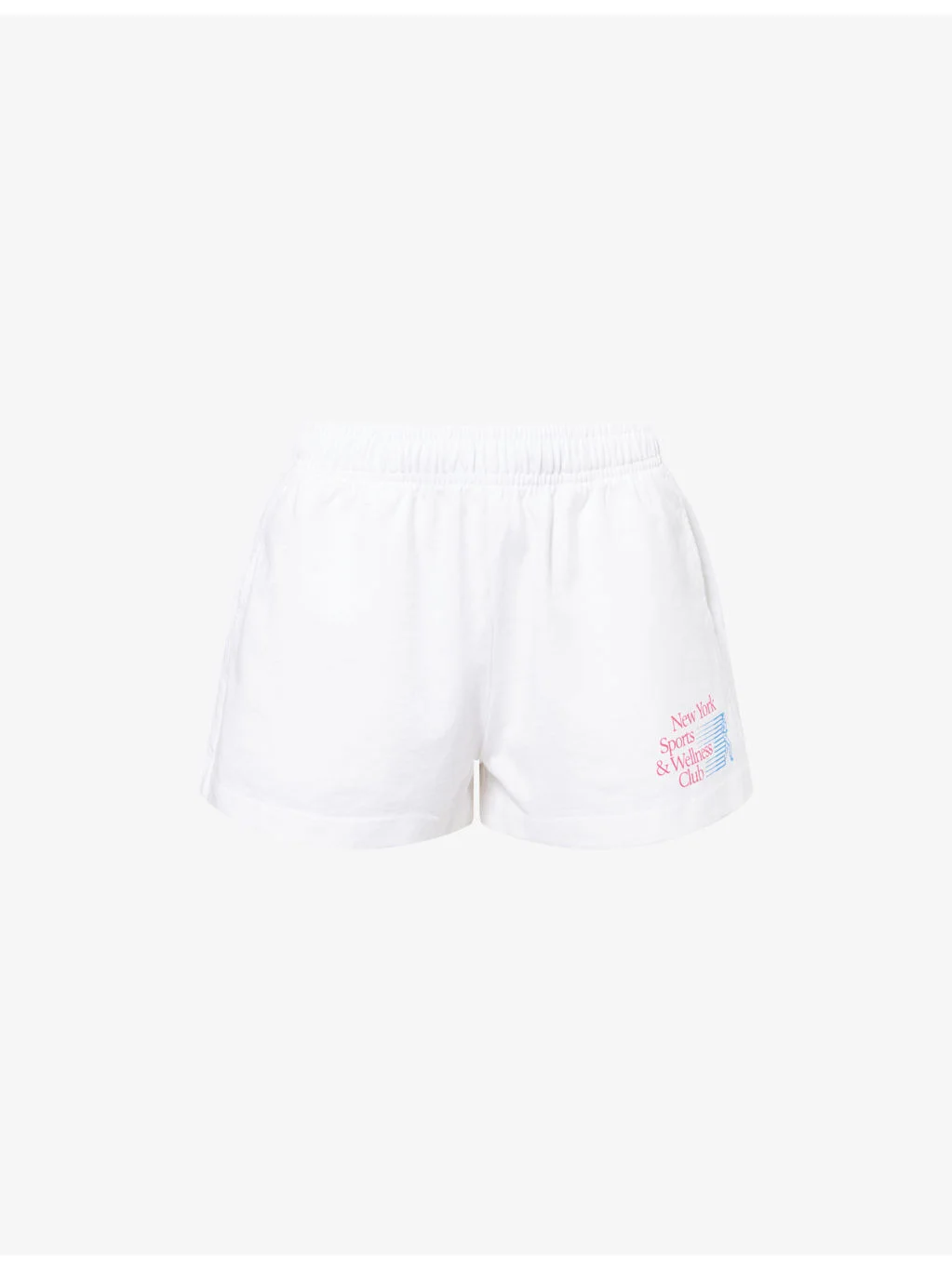 PRODUCT DETAILS - Sporty & Rich cotton-jersey shorts - 100% cotton - Relaxed fit, mid-rise, drawstring elasticated waistband, two slip pockets at sides, text print at front, patch pocket at back - Machine wash at 30°C - Made in Portugal - True to size - Model is 5ft 10in/1.78m and wears a size small - Midweight, slight stretch Ref: R04585420