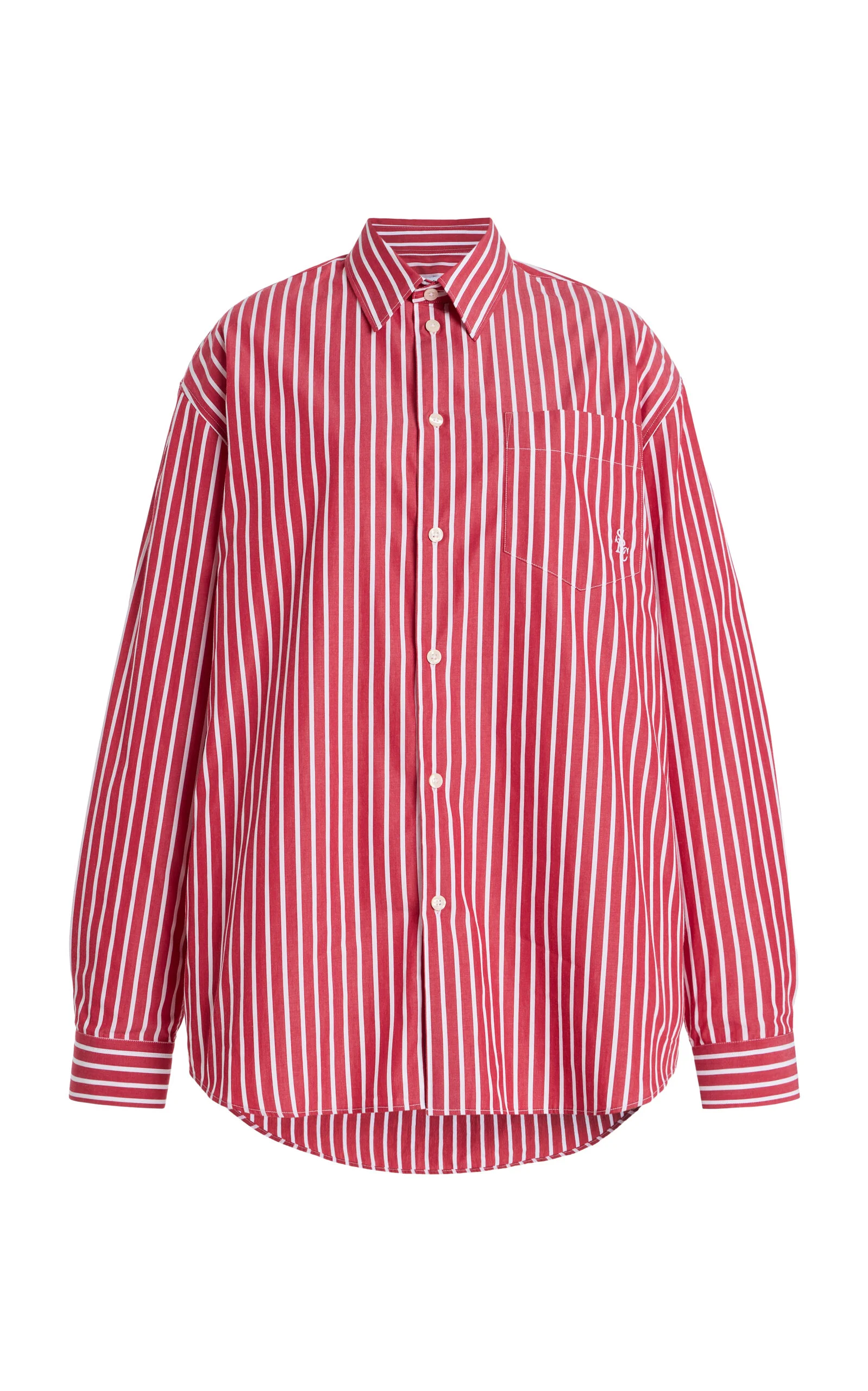 Emily Oberg, the influential designer behind Sporty & Rich, says the lifestyle brand's ethos is "be nice, drink water, be good to the planet, take care of yourself and live a life of pleasure.” Cut from crisp cotton poplin, this oversized button-down shirt features a classic point collar, chest pocket, and bold stripes. Complete the look with the matching boxers. PRODUCT DETAILS - Resort '26 - Button fastenings through front - Composition: 100% cotton - Dry clean - Imported SIZE & FIT - Our model is wearing a size Small - Model is 5'10" with a 31" bust, 23.5" waist, and 33.5" hip