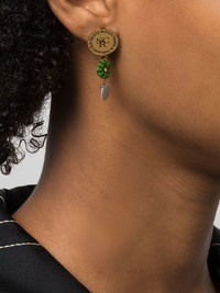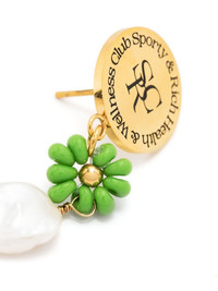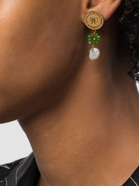 pearl resin drop earrings gold-tone apple green embossed logo to the front resin flower detailing pearl detail rounded stud design dangle design These earrings come as a pair. Imported SIZE & FIT Model measurements Height 5 ft 11 in(1.8 m) Bust/Chest 31.49 in(80 cm) Hips 35.82 in(91 cm) Waist 24.8 in(63 cm) Measurement HEIGHT 1.37 in(3.5 cm) Weight (single earring) 2 g(2 g) WIDTH 0.51 in(1.3 cm)