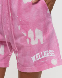 The Wellness Ivy Tie Dye Gym Short from Sporty & Rich is perfect for those who appreciate both style and comfort. These mid-length, heavy jersey shorts feature a drawstring waistband, front pockets as well as a back pocket. - Elastic waistband with drawstring - Shrink free - Garment dyed Article Number: SH952TF Gender: Women Color: TAFFY/WHITE Material: 100% Cotton