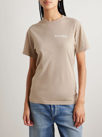 All of Sporty & Rich's T-shirts are pre-washed and shrunk, so they'll fit comfortably from the very first wear. This one is cut from cotton-jersey and printed with the moniker on the chest and a "health and wellness club" logo across the back. Wear it with shorts or track pants at the weekend. Size & Fit - Fits true to size, take your normal size - Designed for a relaxed fit - Lightweight, stretchy fabric - Model is 177cm/ 5'10" and is wearing a size XSmall Details & Care - Mushroom and white cotton-jersey - Slips on - 100% cotton - Machine wash - Designer color: Elephant