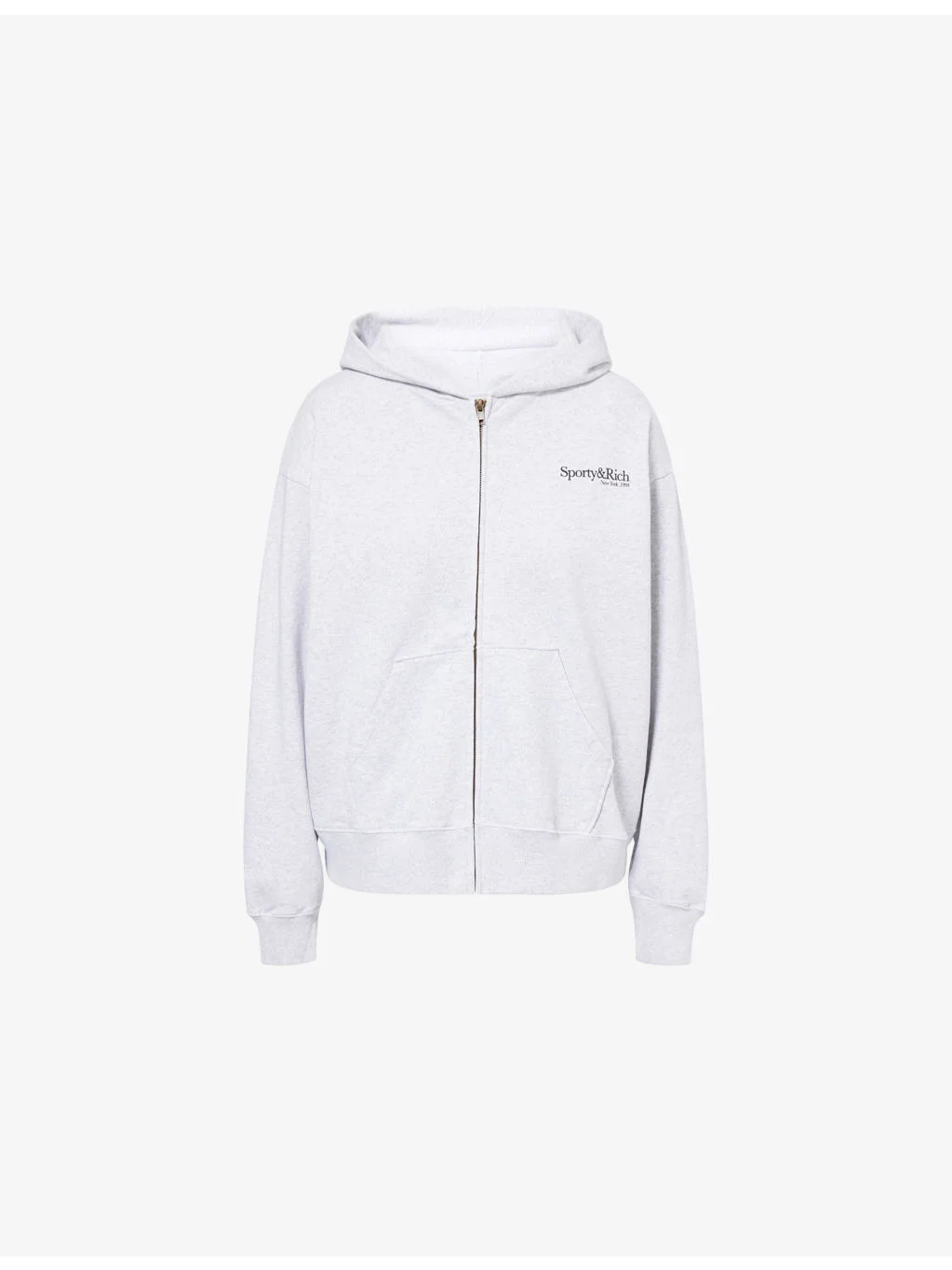 PRODUCT DETAILS - Sporty & Rich cotton hoody - 100% cotton - Zip fastening - Relaxed fit, lined hood, long sleeves, dropped shoulders, patch pockets at front, logo print at chest and back, ribbed trims - Machine wash at 30°C - Made in Portugal - True to size - Model is 5ft 10in/1.78m and wears a size small - Midweight, slight stretch Ref: R04585416