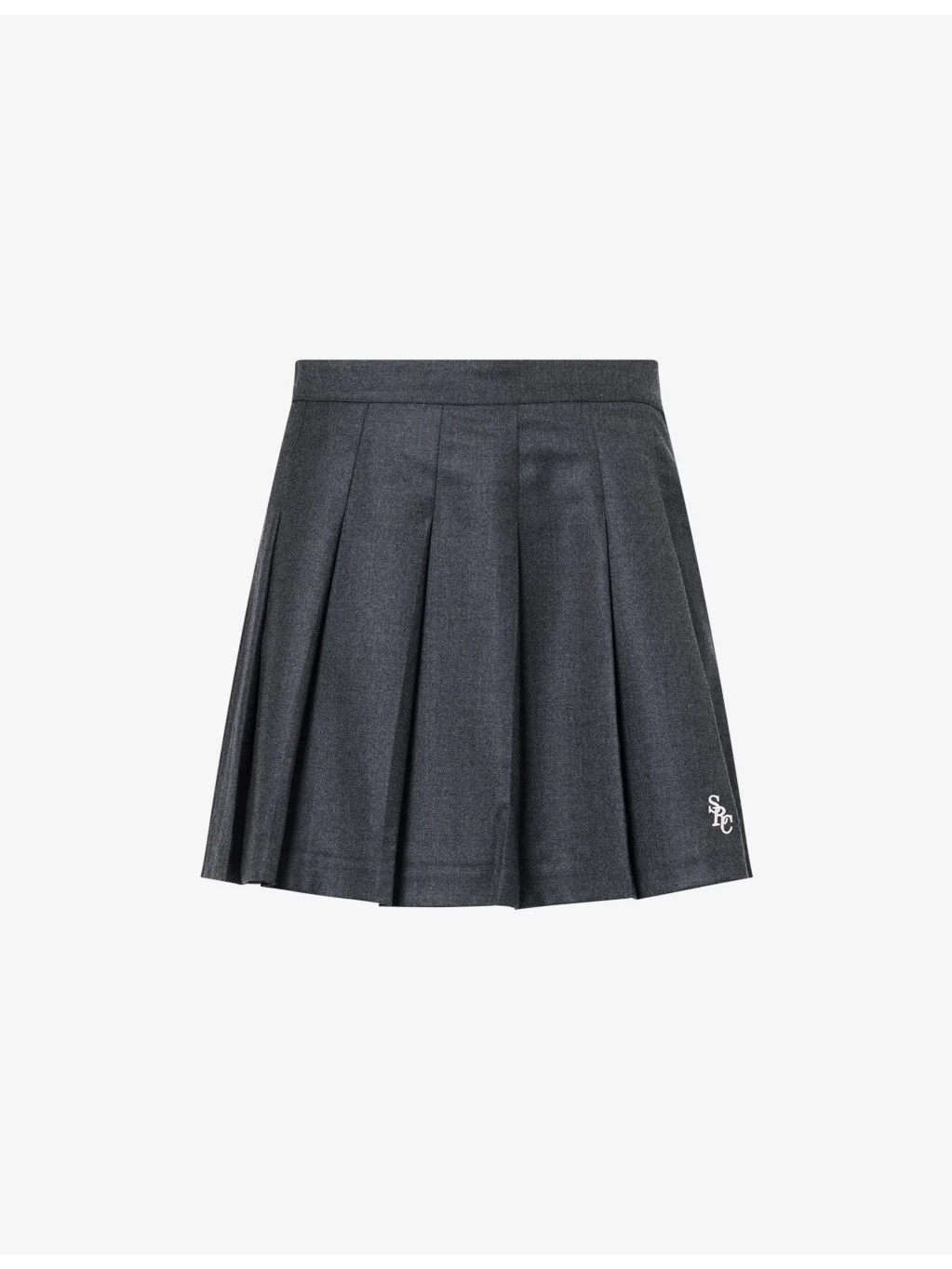 PRODUCT DETAILS - Sporty & Rich wool mini skirt - 97% wool, 3% elastane - Concealed hook-and-eye and zip fastening at side - Regular fit, mid-rise, embroidered logo at front, all-over pleats - Dry clean - True to size - Size small: length 15in / 38.5cm - Model is 5ft 10in/1.78m and wears a size small - Midweight, slight stretch Ref: R04579295