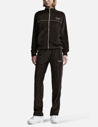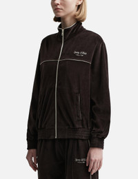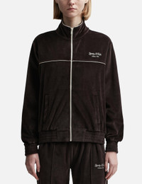 - Sporty & Rich - Script Velour Track Jacket - Soft velour fabric - Stand collar - Piping details - Embroidered logo at chest - Zip closure - Color: Chocolate - Material: Cotton - See more Jackets and Clothing SIZING - Model wears size S - Model measures: Height 179cm, Chest 32”/81cm, Waist 23’’/58.42cm, Hip 35’’/88.9cm