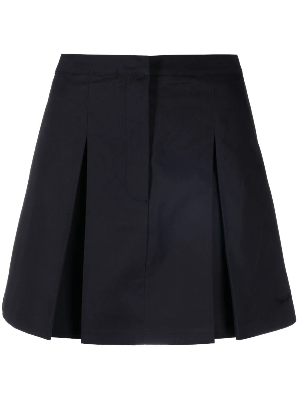 logo-embroidery mini skirt Highlights - Navy blue - Cotton - Twill weave - Godet design - Branded zip puller - Embroidered logo to the side - Hook and zip fly fastening - Curved hem - Full lining Imported Composition Lining: Polyester 100% Outer: Cotton 100% Washing instructions Machine Wash