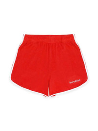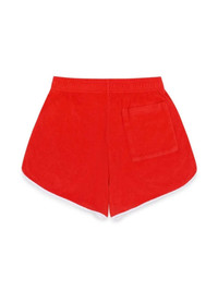 Serif Logo mini shorts Highlights - Bright red - Cotton - Terry-cloth effect - Logo stamp to the front - Contrasting trim - Elasticated waistband - Rear patch pocket Imported Composition Cotton 100% Washing instructions Read Manufacturer Guidelines