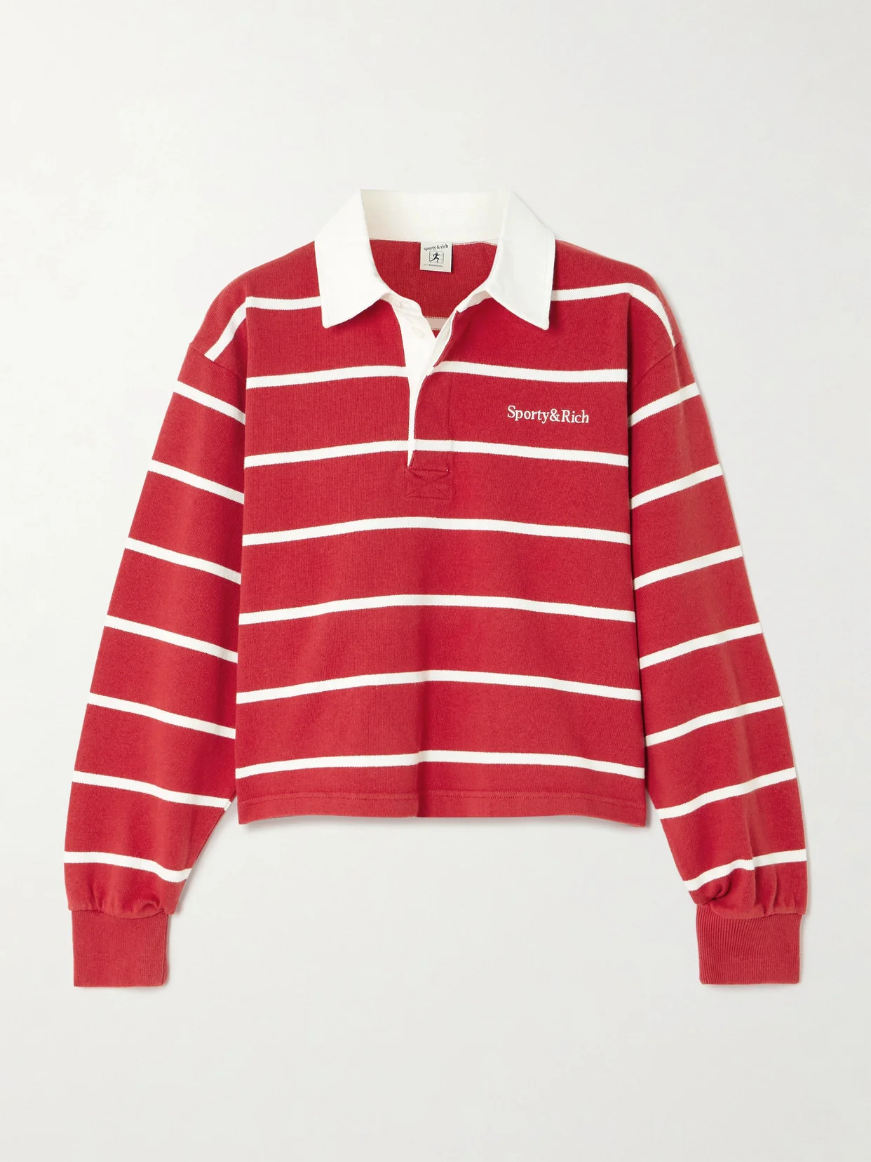 Sporty & Rich's 'Serif' polo shirt embodies modern prep. Modelled on rugby styles, it's made from cotton-jersey in a boxy, cropped shape, has a canvas collar and classic stripes. Wear yours with dark-wash denim and loafers for an easy weekend look.