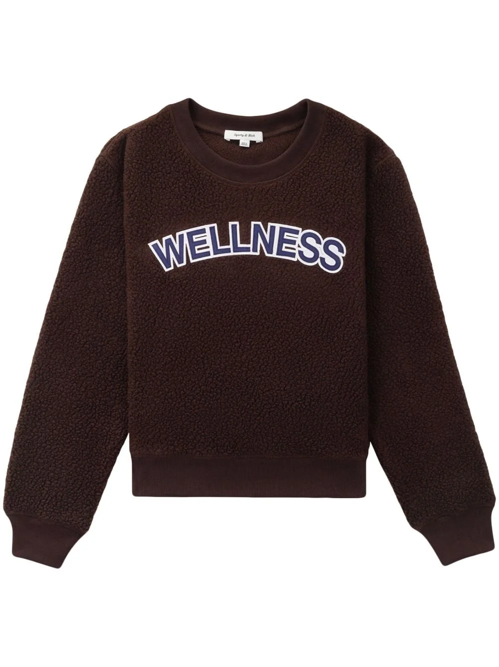 slogan-patch fleece jumper Highlights - Chocolate brown - Fleece texture - Slogan patch to the front - Crew neck - Long sleeves - Elasticated cuffs - Elasticated hem - When buying this unisex item, keep in mind that it is graded in standard men's sizing. Imported Composition Polyester 100% Washing instructions Machine Wash