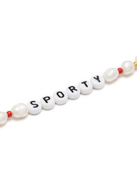 Sporty pearl-bead bracelet white/multicolour brass pearl detail bead detailing Sporty lettered beads logo charm rear clasp fastening Imported SIZE & FIT Model measurements Height 5 ft 11 in(1.8 m) Bust/Chest 31.49 in(80 cm) Hips 35.82 in(91 cm) Waist 24.8 in(63 cm) Measurement Minimum Length 6.69 in(17 cm) TOTAL LENGTH 8.26 in(21 cm) WIDTH 0.15 in(0.4 cm)