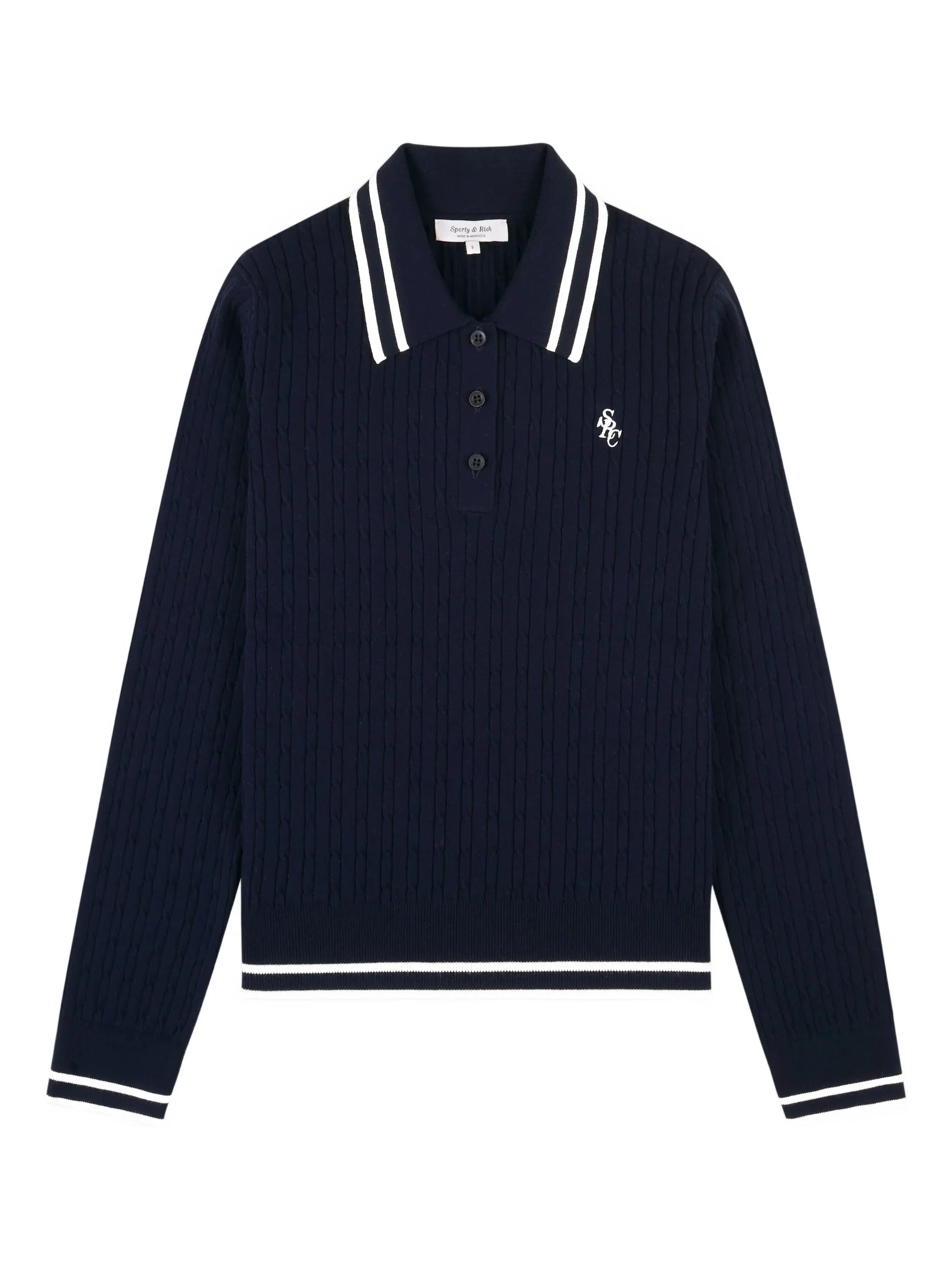 Sporty & Rich Cable-knit Striped Polo Shirt