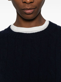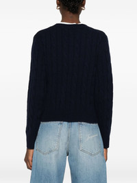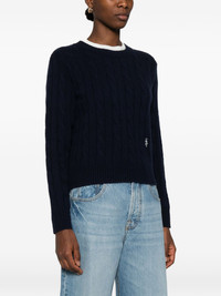 cable-knit sweate Highlights - Dark navy - Cable knit - Logo detail - Round neck - Long sleeves - Ribbed hem Imported Composition Cashmere 70%, Wool 30% SIZE & FIT Model measurements Height 5 ft 10 in(1.78 m) Bust/Chest 31.49 in(80 cm) Hips 37 in(94 cm) Waist 23.62 in(60 cm) Washing instructions Hand Wash