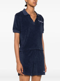 Sporty & Rich Embroidered Cotton Terry Polo Top
