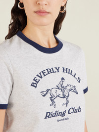 Sporty & Rich's 'Riding Club' T-shirt evokes retro styles with its contrast piping. It's made from cotton-jersey and printed with a preppy equestrian graphic.