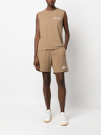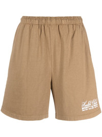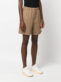 logo-print track shorts Highlights - Sand brown - Cotton - Logo print at the hem - Elasticated waistband - Wide leg - Rear patch pocket - Above-knee length Made in United States Composition Cotton 100% SIZE & FIT Model measurements Height 5 ft 10 in(1.78 m) Bust/Chest 31.49 in(80 cm) Hips 37 in(94 cm) Waist 23.62 in(60 cm) FittingInformation Designed for a loose fit, offering comfort and movement when worn Adjust this piece’s waistband to your preference using the drawstring Made from a midweight non-stretch fabric, this piece offers minimal elasticity when worn This piece fits true to size – take your usual size