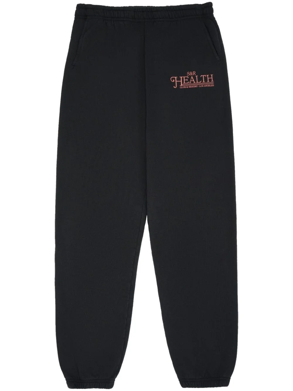 SR Health Resort cotton track pants Highlights - Black - Cotton - Elasticated waistband - Two side slit pockets - Embroidered logo to the front - Rear patch pocket - Straight leg - Elasticated ankles - When buying this unisex item, keep in mind that it is graded in standard men's sizing. Made in United States Composition Cotton 100% Washing instructions Read Manufacturer Guidelines