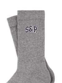 300050576GRY-NS / E6AC07764082GY03/00/19 - Mid-calf height design - Ribbed cotton blend construction - Embroidered S&R logo on cuff - Cushioned sole for comfort - Reinforced heel and toe - Classic fit Sporty & Rich S&R Ivy Socks deliver everyday luxury with premium cotton construction and signature brand styling. Crafted from soft ribbed cotton blend in classic heather gray, featuring the iconic S&R logo embroidered on the cuff. The mid-calf height and comfortable fit make these essential wardrobe staples for elevated casual wear.