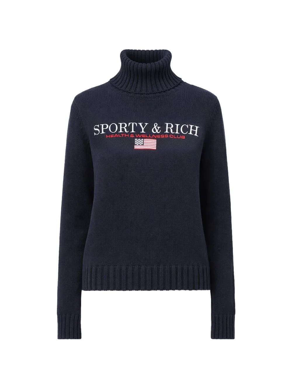 S&R Nautical knitted turtle-neck sweater Highlights - Dark navy - Embroidered detailing - Ribbed knit - Turtleneck - Long sleeves - Ribbed hem Imported Composition Cotton 100% Washing instructions Read Manufacturer Guidelines