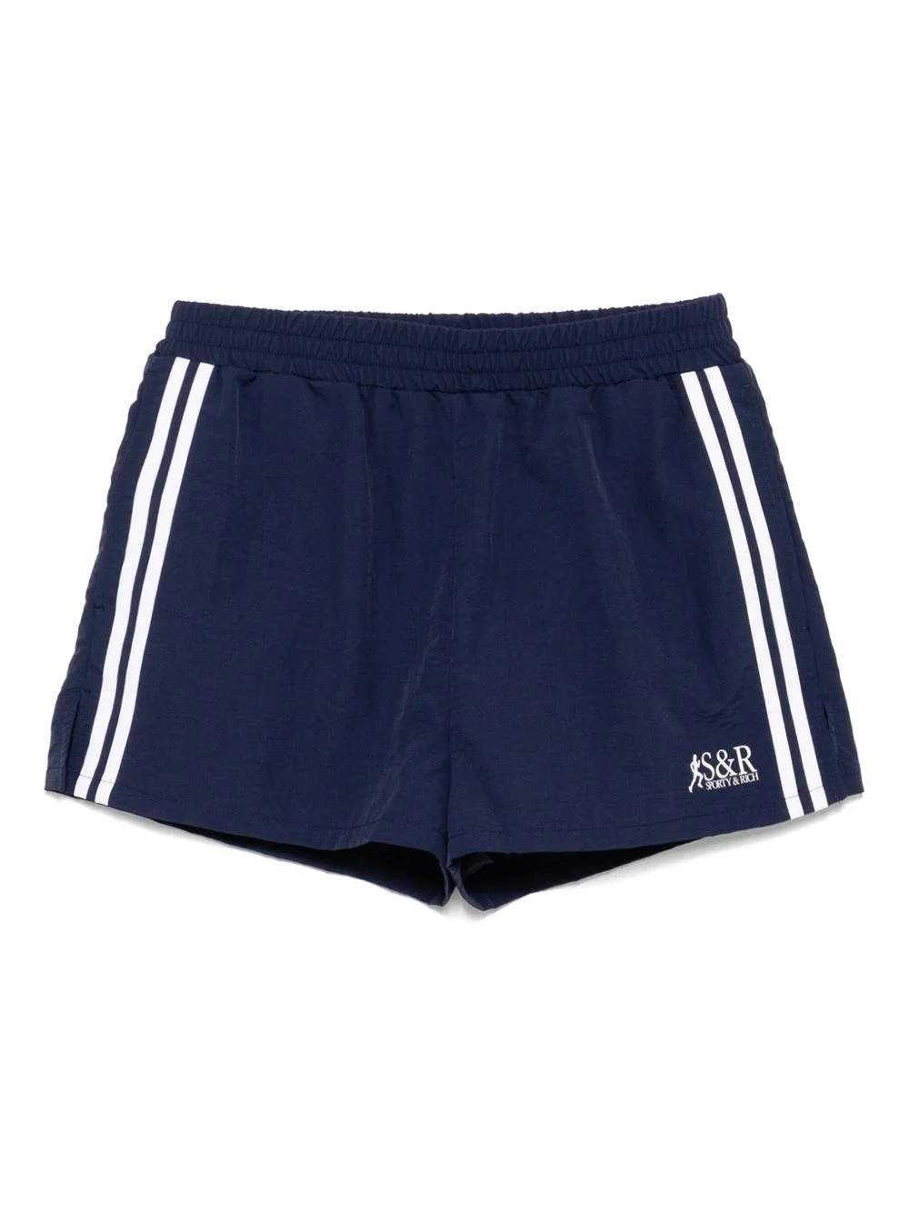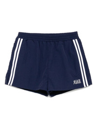 SR Runner track short Highlights - Navy blue - Elasticated waistband - Two side inset pockets - Short side slits Imported Composition Nylon 100% SIZE & FIT Model measurements Height 5 ft 10 in(1.78 m) Bust/Chest 29.92 in(76 cm) Hips 34.64 in(88 cm) Waist 24.8 in(63 cm) FittingInformation Designed for a loose fit with a close-fitting internal layer The elasticated waist allows for a comfortable fit Made from a midweight non-stretch fabric Washing instructions Machine Wash