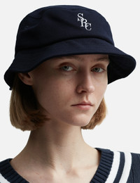 - Sporty & Rich - SRC Pique Bucket Hat - Cotton bucket hat - Embroidered logo - Unisex - Color: Navy - Material: 100% Cotton Pique - See more Hats and Accessories SIZING Approximate dimensions: - Brim Width: 5cm - Crown Height: 7cm - Circumference: 57cm