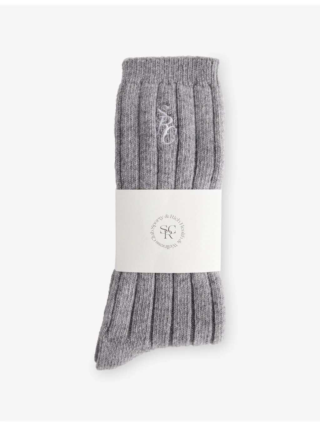 PRODUCT DETAILS - Sporty & Rich stretch-wool blend socks - 63% wool, 27% cashmere, 9% polyamide, 1% elastane - Ankle rise, elasticated cuffs, brand embroidery at side, all-over knitted and ribbed - Machine wash at 30°C - Made in Portugal - Midweight, stretchy Ref: R04585430