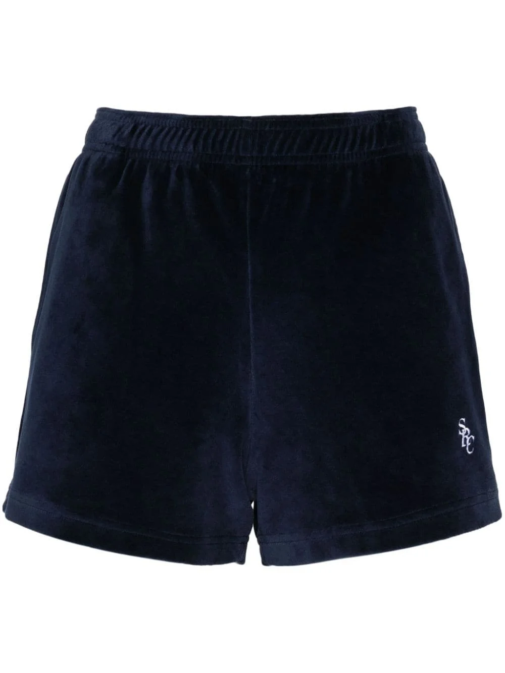 SRC velour mini shorts Highlights - Navy blue - Cotton - Velour - Elasticated waistband - Two side slit pockets - Embroidered logo at the leg - Rear patch pocket - Unlined Imported Composition Cotton 100% SIZE & FIT Model measurements Height 5 ft 11 in(1.8 m) Bust/Chest 33.07 in(84 cm) Hips 37.4 in(95 cm) Waist 25.19 in(64 cm) FittingInformation Designed for a slim fit with a close-fitting internal layer The elasticated waist allows for a comfortable fit Made from a midweight non-stretch fabric, this piece offers minimal elasticity when worn This piece fits true to size – take your usual size