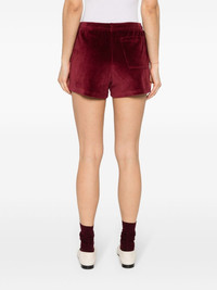 SRC velour mini shorts burgundy cotton velour elasticated waistband two side slit pockets embroidered logo at the leg rear patch pocket unlined Imported Composition Cotton 100% SIZE & FIT Model measurements Height 5 ft 11 in(1.8 m) Bust/Chest 33.07 in(84 cm) Hips 37.4 in(95 cm) Waist 25.19 in(64 cm) FittingInformation Designed for a slim fit that sits just away from the body offering a close yet comfortable fit The elasticated waist allows for a comfortable fit Made from a midweight non-stretch fabric, this piece offers minimal elasticity when worn This piece fits true to size – take your usual size