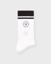 Socks SRHWC from Sporty & Rich. These socks are crafted from a soft and durable cotton blend and feature an embroidered logo for a clean, refined look. Designed to fit shoe size 5.5 to 9.5, they offer a comfortable stretch that adapts to the foot. Made in Portugal with a focus on quality and everyday comfort. Specification - Article number - ID: 176811-751 - Brand: Sporty & Rich - Color: Vit/brun - Washing Instructions: Machine wash in 30-40 degrees - Made of: 83% cotton, 15% polyamide, and 2% elastane. - Color: Brown