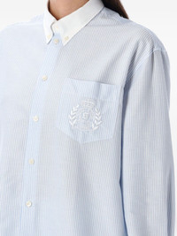 stripe-pattern embroidered-logo shirt Highlights - Blue - Stripe pattern - Long sleeve - Button fastening - Embroidered logo - Patch pocket - Button cuff Imported Composition Cotton 100% Washing instructions Read Manufacturer Guidelines