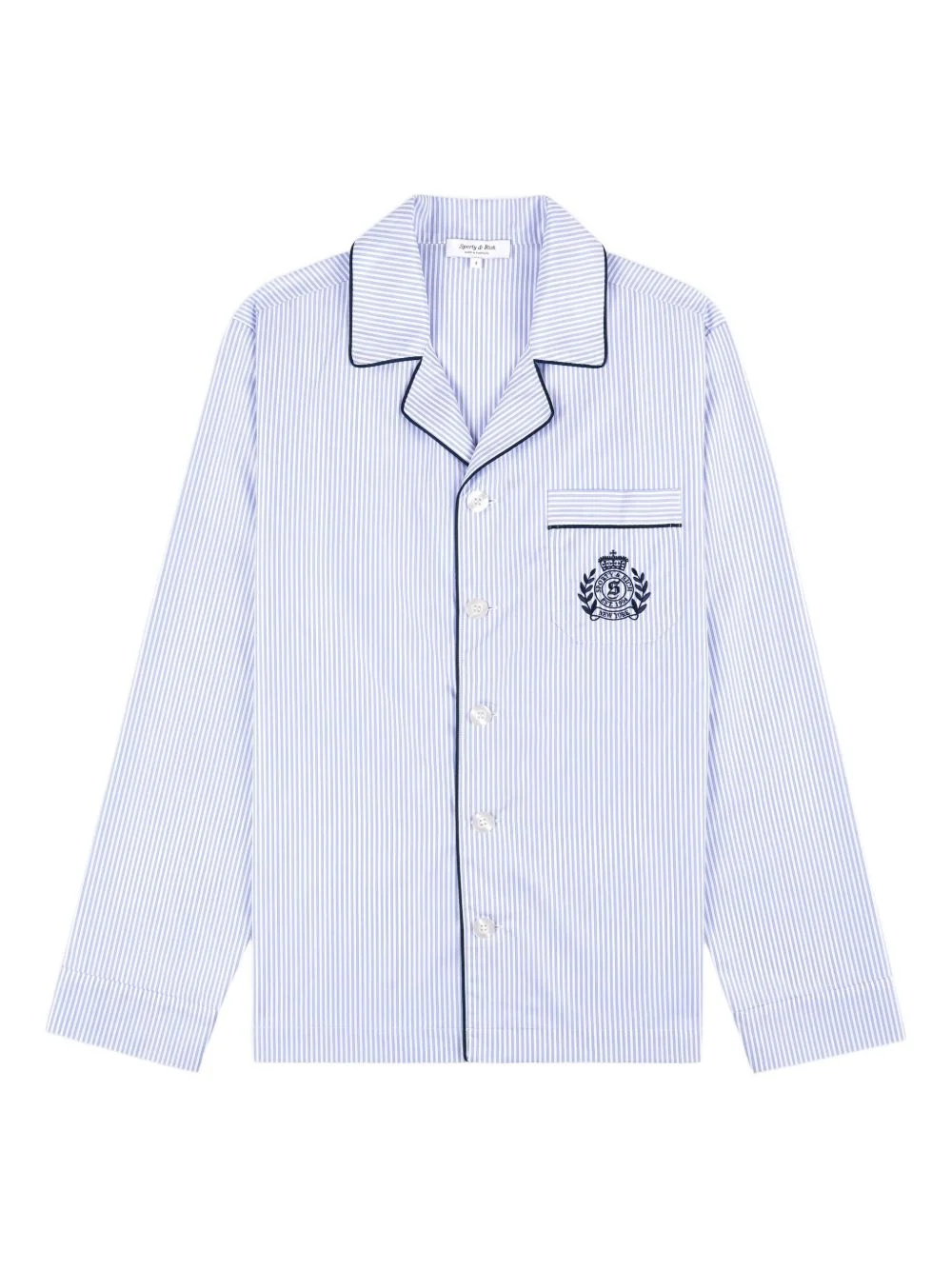 striped embroidered top Highlights - Blue - Striped pattern - Embroidered detail - Chest pocket - Button fastening - Piped trims Imported Composition Cotton 100% Washing instructions Read Manufacturer Guidelines