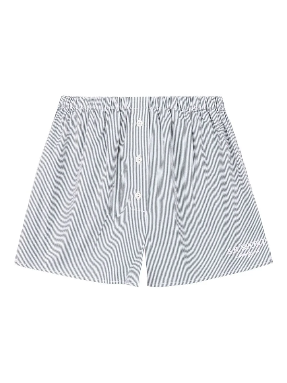 striped lounge shorts Highlights - Light blue - Vertical stripes - Elasticated waistband - Front button details - Logo lettering - Relaxed fit Imported Composition Cotton 100%