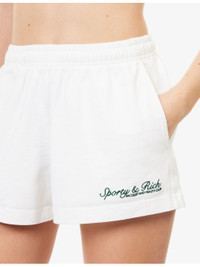 PRODUCT DETAILS - Sporty & Rich cotton-jersey shorts - 100% cotton - Regular fit, mid-rise, drawstring elasticated waistband, two slip pockets and brand embroidery at front, patch pocket at back - Machine wash at 30°C - Made in Portugal - True to size - Model is 5ft 10in/1.78m and wears a size small - Lightweight, stretchy Ref: R04561384