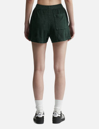 - Sporty & Rich - Syracuse Terry Shorts - Super-short - Regular fit - Cotton terry vloth - Elasticated waistband - Garment dyed - Embroidered branding above left cuff - Two front pockets - Single rear pocket - Color: Forest/White - Material: 100% Cotton - See more Shorts and Clothing SIZING - Model wears size S - Model measures: Height 179cm, Chest 32"/81cm, Waist 23’‘/58.42cm, Hip 35’’/88.9cm