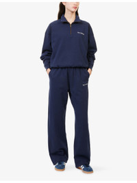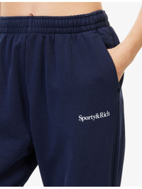 PRODUCT DETAILS - Sporty & Rich cotton-jersey jogging bottoms - 100% cotton - Relaxed fit, elasticated drawstring waistband, wide leg, two side slip pockets, logo print at front, one rear patch pocket, jersey texture - Machine wash at 30°C - Made in Portugal - True to size - Model is 5ft 10in/1.78m and wears a size small - Midweight, slight stretch Ref: R04561378