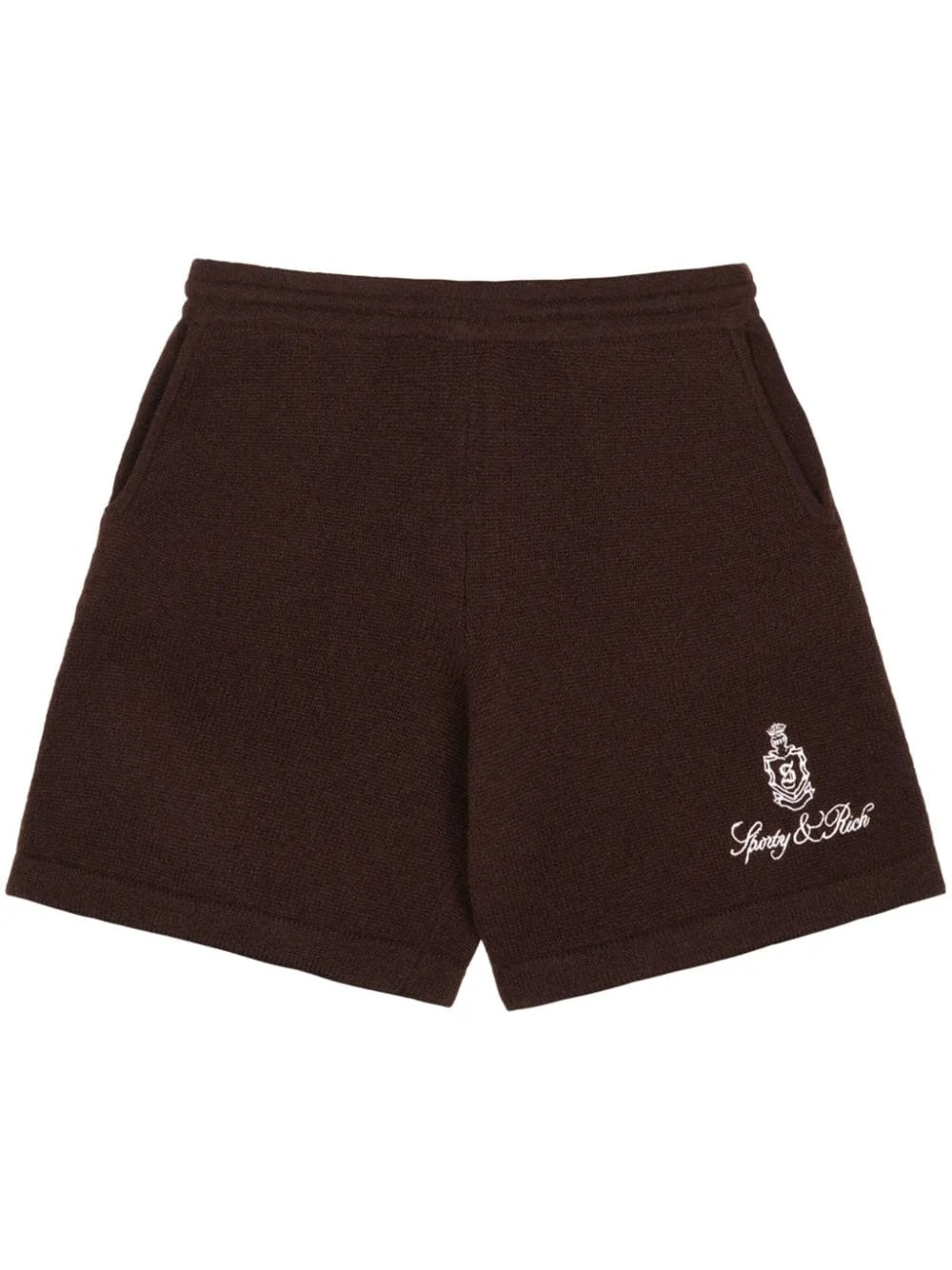 Vendome logo-embroidered cashmere shorts Highlights - Chocolate brown - Cashmere - Fine knit - Embroidered logo at the leg - Thigh-length - Elasticated waistband with internal drawstring - Two side slit pockets Imported Composition Cashmere 100%