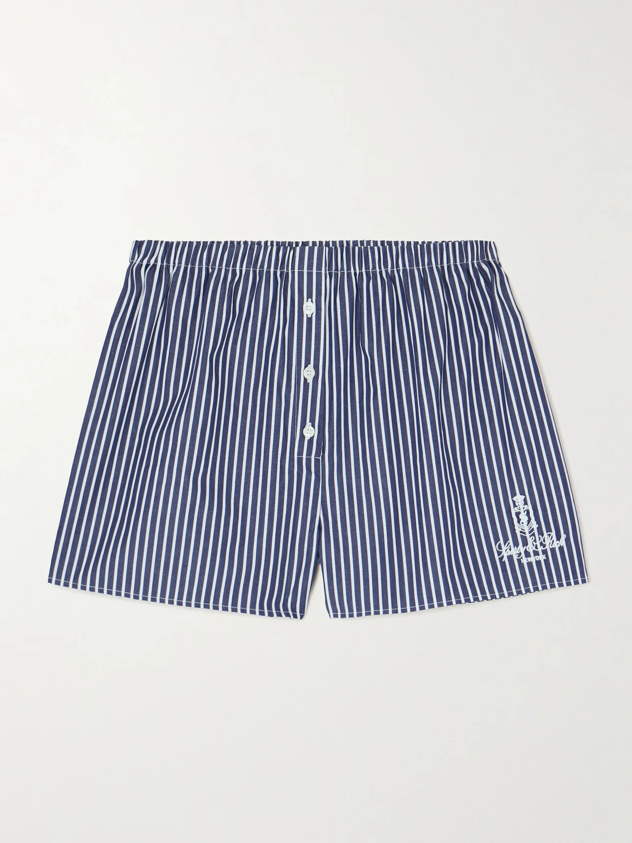 Vendome Mini Boxer Embroidered Striped Cotton Shorts